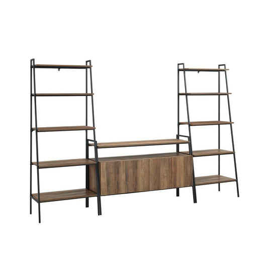 3-Piece Ladder Shelf Entertainment Wall - Rustic Oak
