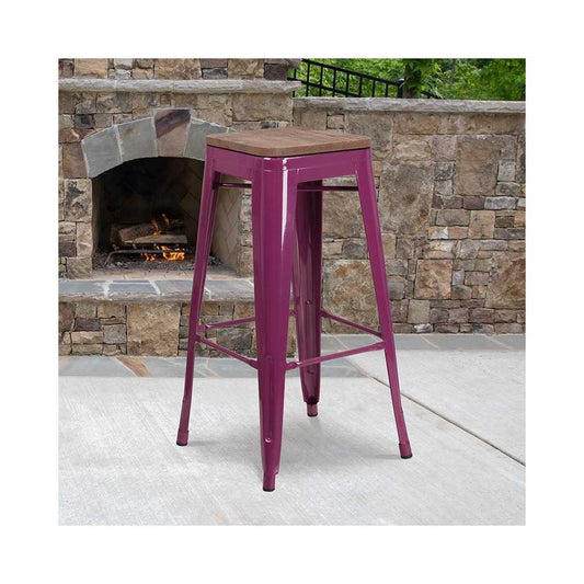 30" High Metal Indoor Bar Stool in Black - Stackable Set of 4