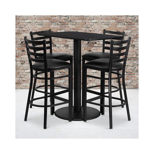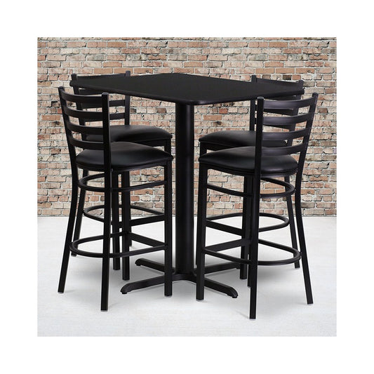 24''W x 42''L Rectangular Black Laminate Table Set with 4 Ladder Back Metal Barstools - Black Vinyl Seat