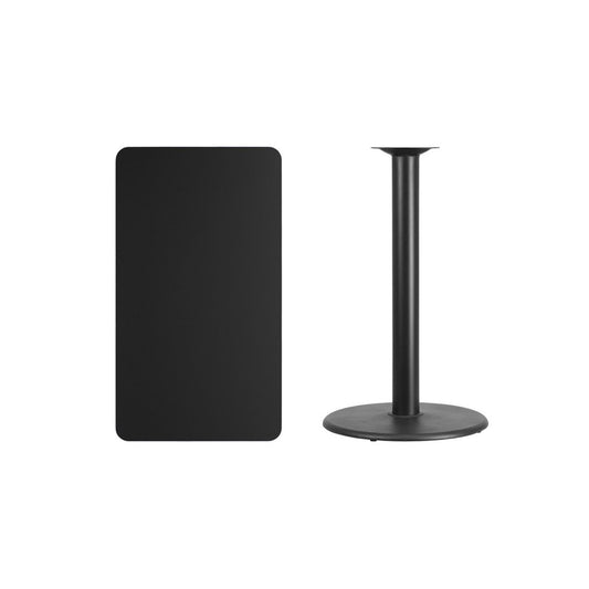24'' x 30'' Rectangular Black Laminate Table Top with 18'' Round Bar Height Table Base and Foot Ring