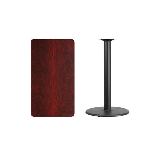 24'' x 30'' Rectangular Mahogany Laminate Table Top with 18'' Round Bar Height Table Base and Foot Ring