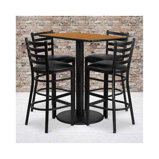 24'' x 42'' Rectangular Natural Laminate Table Set with 4 Ladder Back Metal Barstools - Black Vinyl Seat
