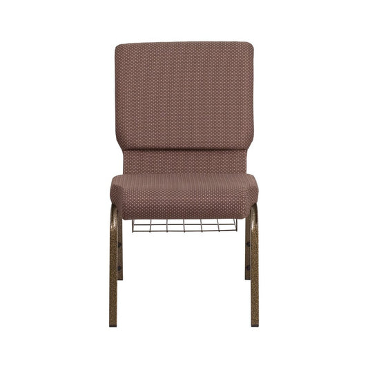 18.5''W Church Chair in Brown Dot Fabric with Book Rack - Gold Vein Frame