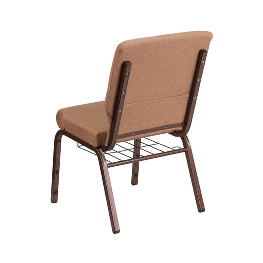 18.5''W Church Chair in Caramel Fabric with Cup Book Rack - Copper Vein Frame