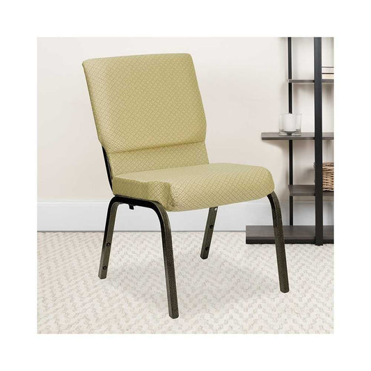 18.5''W Stacking Church Chair in Beige Patterned Fabric - Gold Vein Frame