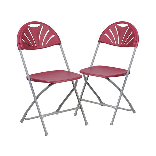 2 Pack 650 lb. Capacity Burgundy Plastic Fan Back Folding Chair