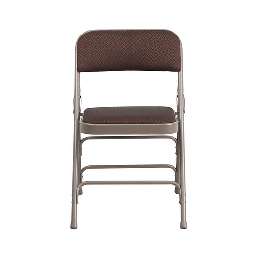 2 Pack Curved Triple Braced & Double Hinged Brown Patterned Fabric Metal Folding Chair
