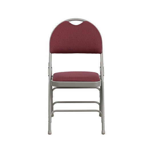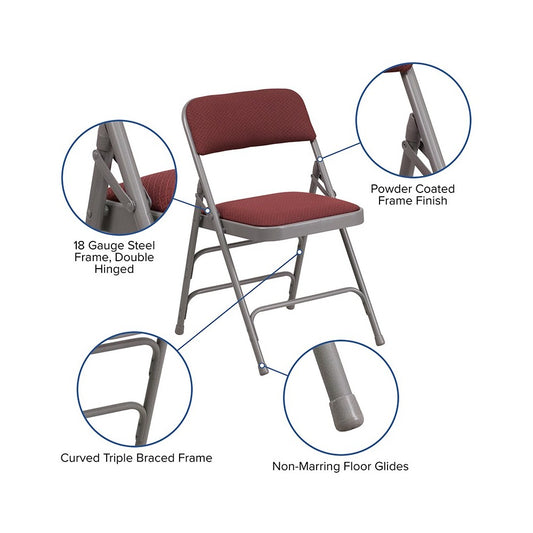 2 Pack Ultra-Premium Triple Braced Burgundy Fabric Metal Folding Chair with Easy-Carry Handle