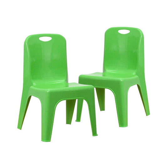 2 Pack Green Plastic Stackable School Chair with Carrying Handle and 11" Seat Height