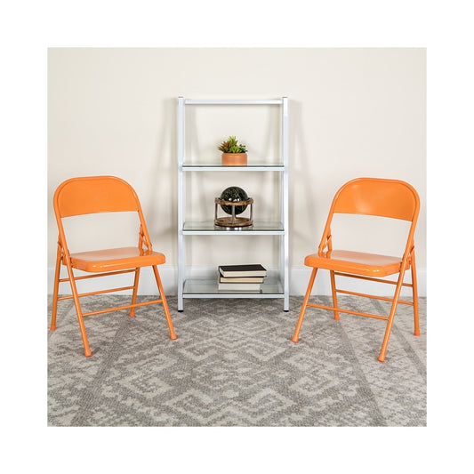 2 Pack Series Orange Marmalade Triple Braced & Double Hinged Metal Folding Chair