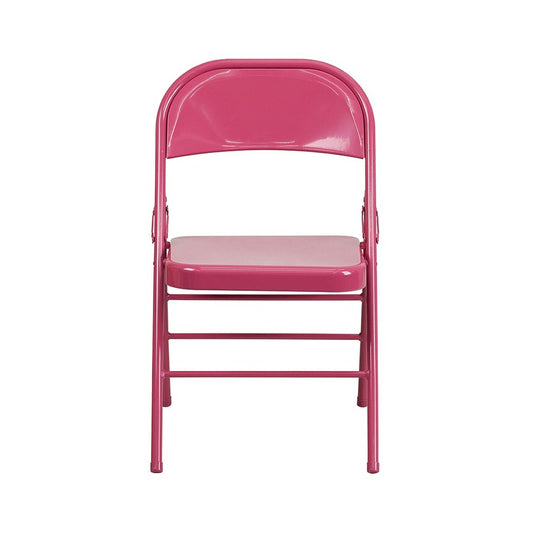 2 Pack Series Shockingly Fuchsia Triple Braced & Double Hinged Metal Folding Chair