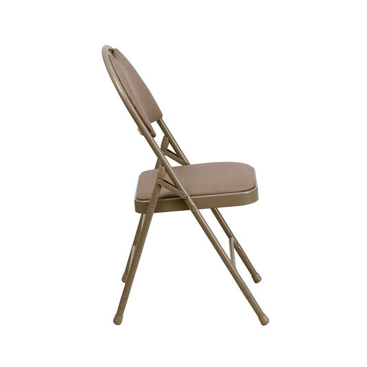 2 Pack Ultra-Premium Triple Braced Beige Fabric Metal Folding Chair with Easy-Carry Handle