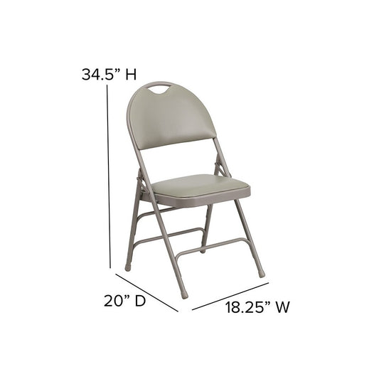 2 Pack Ultra-Premium Triple Braced Gray Vinyl Metal Folding Chair with Easy-Carry Handle