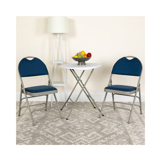 2 Pack Ultra-Premium Triple Braced Navy Fabric Metal Folding Chair with Easy-Carry Handle