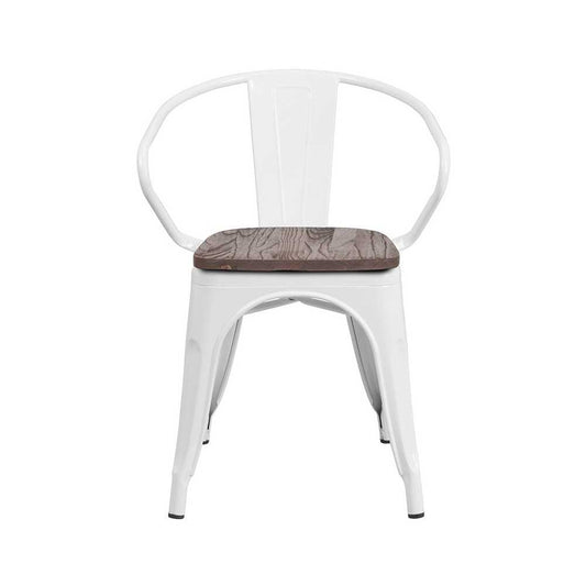 White Metal Chair with Wood Seat and Arms