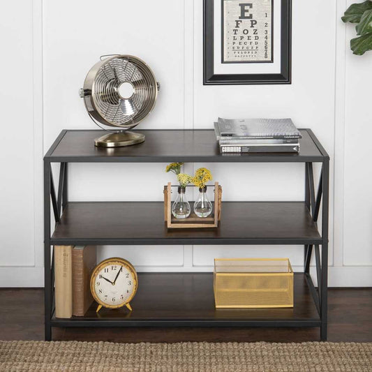 X Frame 40" Industrial Wood Bookshelf - Dark Walnut
