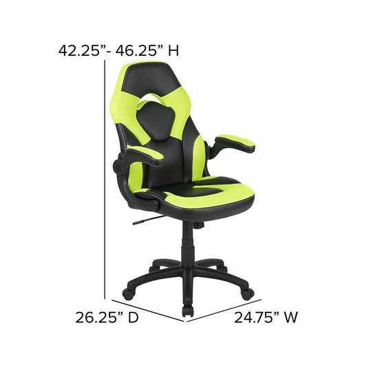 X10 Gaming Chair Racing Office Ergonomic Computer PC Adjustable Swivel Chair with Flip-up Arms, Neon Green/Black LeatherSoft
