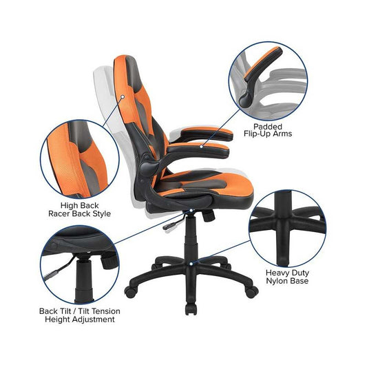 X10 Gaming Chair Racing Office Ergonomic Computer PC Adjustable Swivel Chair with Flip-up Arms, Orange/Black LeatherSoft