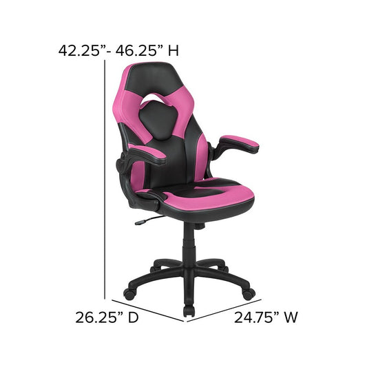 X10 Gaming Chair Racing Office Ergonomic Computer PC Adjustable Swivel Chair with Flip-up Arms, Pink/Black LeatherSoft