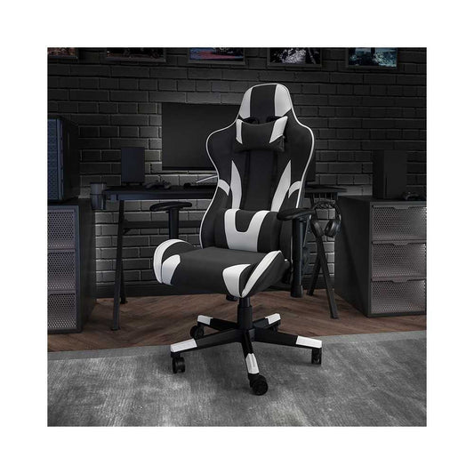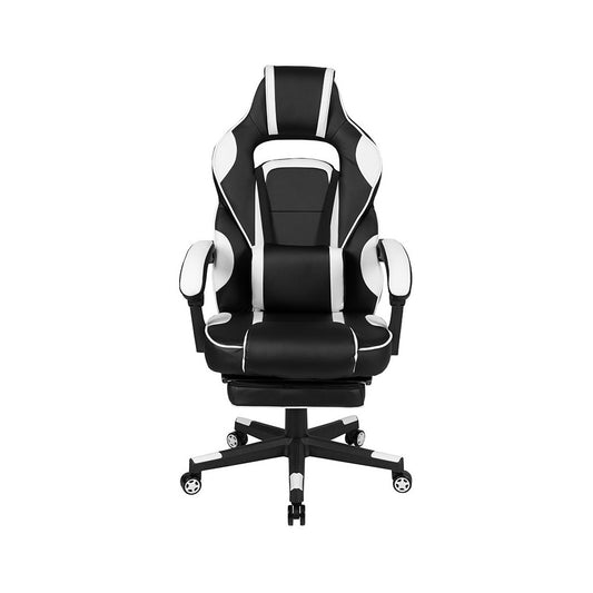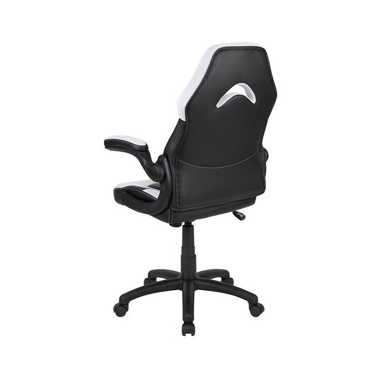 X10 Gaming Chair Racing Office Ergonomic Computer PC Adjustable Swivel Chair with Flip-up Arms, White/Black LeatherSoft