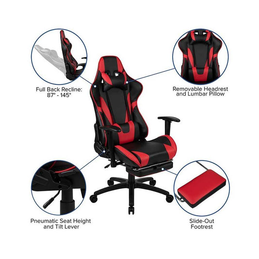 X30 Gaming Chair Racing Office Ergonomic Computer Chair with Fully Reclining Back and Slide-Out Footrest in Red LeatherSoft