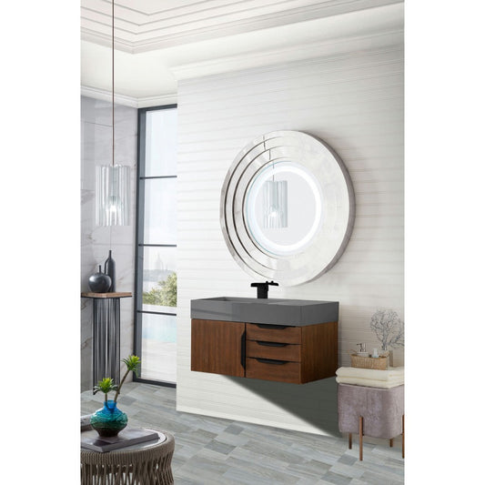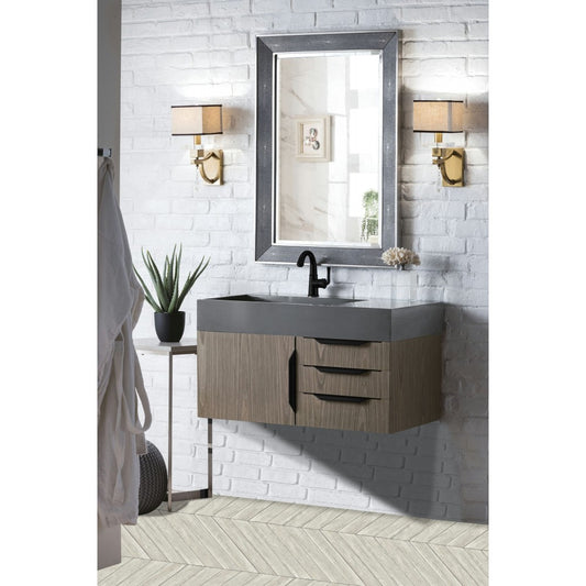Mercer Island 36" Single Vanity Latte Oak Black w/Dusk Gray Glossy Composite Top