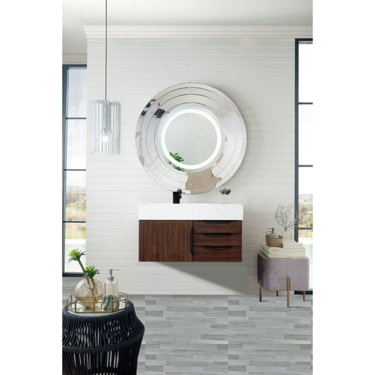Mercer Island 36" Single Vanity Coffee Oak Black w/Glossy White Composite Top