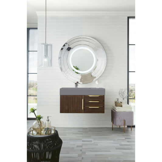 Mercer Island 36" Single Vanity Latte Oak Radiant Gold,Dusk Gray Composite Top
