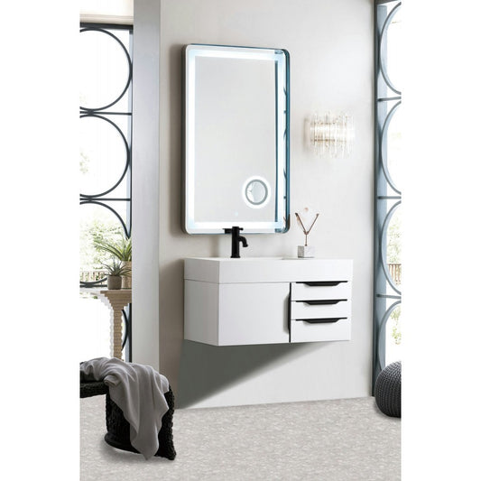 Mercer Island 36" Single Vanity Glossy White Black w/Glossy White Composite Top