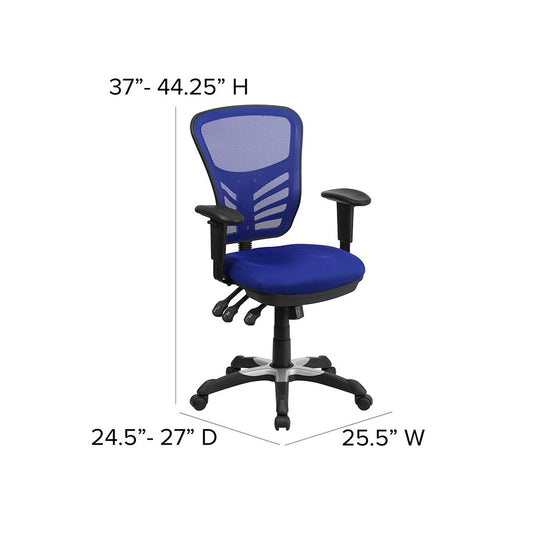 Mid-Back Blue Mesh Multifunction Executive Swivel Ergonomic Office Chair with Adjustable Arms
