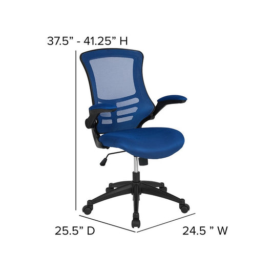 Mid-Back Blue Mesh Swivel Ergonomic Task Office Chair with Flip-Up Arms