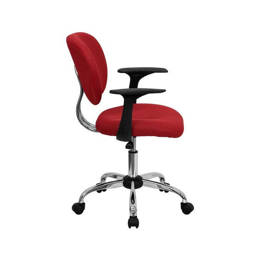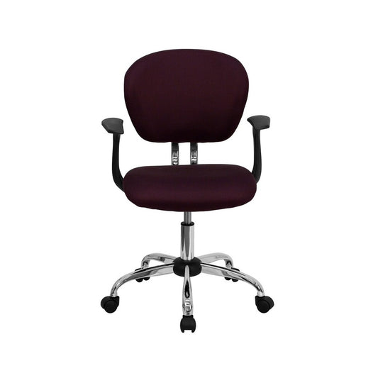 Mid-Back Burgundy Mesh Padded Swivel Task Office Chair with Chrome Base and Arms