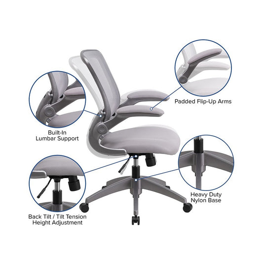 Mid-Back Gray Mesh Swivel Ergonomic Task Office Chair with Gray Frame and Flip-Up Arms