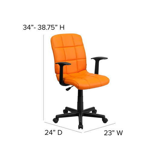 Mid-Back Orange Quilted Vinyl Swivel Task Office Chair with Arms