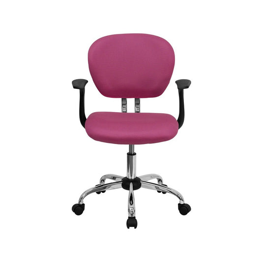 Mid-Back Pink Mesh Padded Swivel Task Office Chair with Chrome Base and Arms