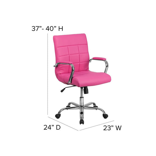 Mid-Back Pink Vinyl Executive Swivel Office Chair with Chrome Base and Arms