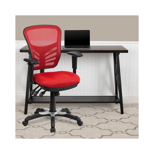 Mid-Back Red Mesh Multifunction Executive Swivel Ergonomic Office Chair with Adjustable Arms