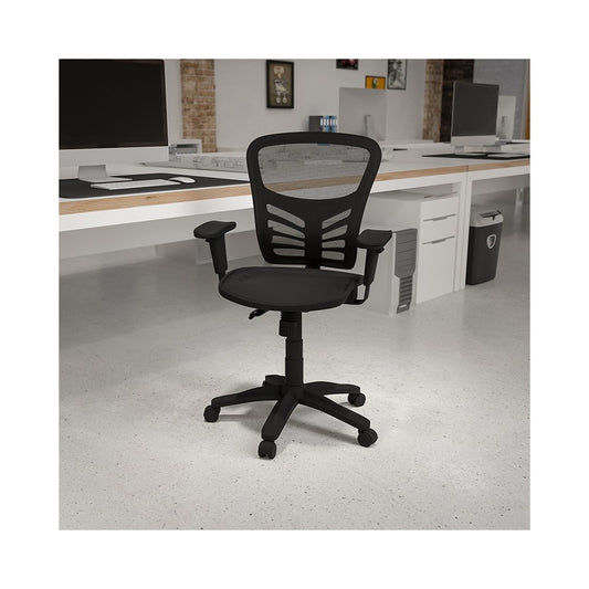 Mid-Back Transparent Black Mesh Multifunction Executive Swivel Ergonomic Office Chair with Adjustable Arms