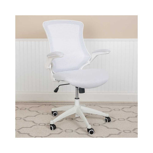 Mid-Back White Mesh Swivel Ergonomic Task Office Chair with White Frame and Flip-Up Arms