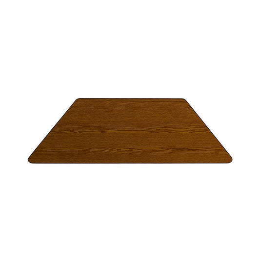 Mobile 22.5''W x 45''L Trapezoid Oak HP Laminate Activity Table - Standard Height Adjustable Legs