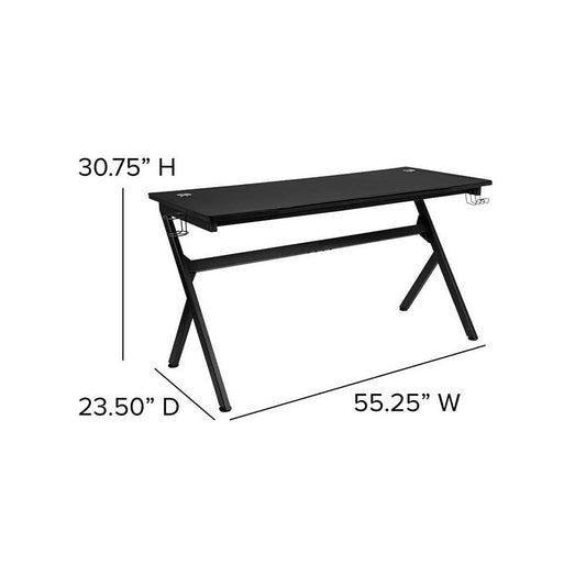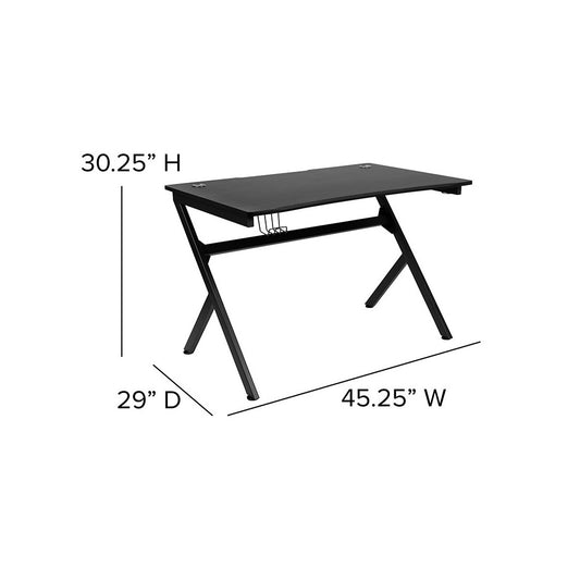 Gaming Desk 45.25" x 29" Computer Table Gamer Workstation with Headphone Holder and 2 Cable Management Holes