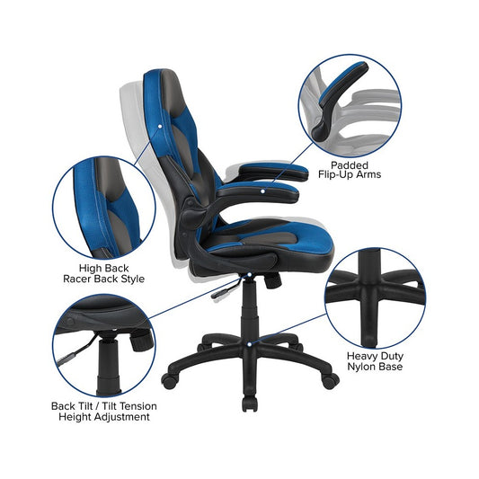 Gaming Desk and Blue/Black Racing Chair Set /Cup Holder/Headphone Hook/Removable Mouse Pad Top - 2 Wire Management Holes