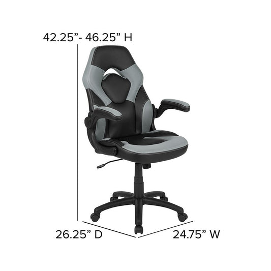 Gaming Desk and Gray/Black Racing Chair Set /Cup Holder/Headphone Hook/Removable Mouse Pad Top - 2 Wire Management Holes