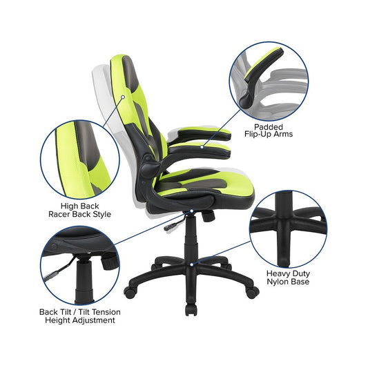 Gaming Desk and Green/Black Racing Chair Set /Cup Holder/Headphone Hook/Removable Mouse Pad Top - 2 Wire Management Holes