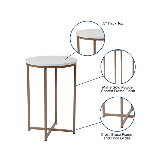 Hampstead Collection White End Table with Matte Gold Frame