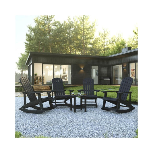 Flash Furniture Savannah 4PK Black Rockers & 1 Table JJ-C14705-4-T14001-BK-GG