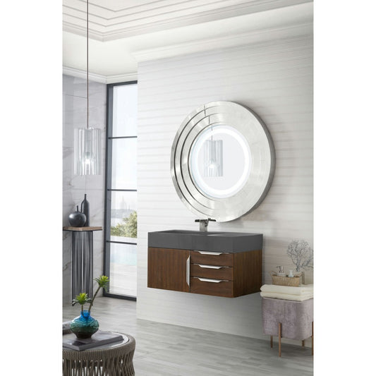 Mercer Island 36" Single Vanity, Coffee Oakw/ Dusk Gray Glossy Composite Top