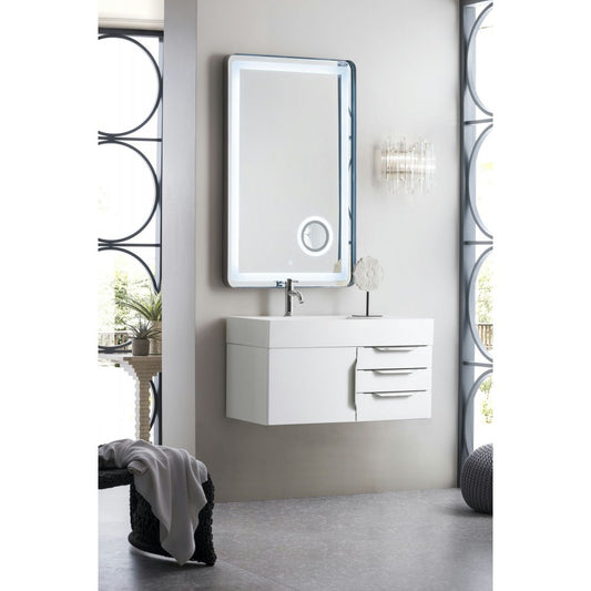 Mercer Island 36" Single Vanity, Glossy White w/ Glossy White Composite Top