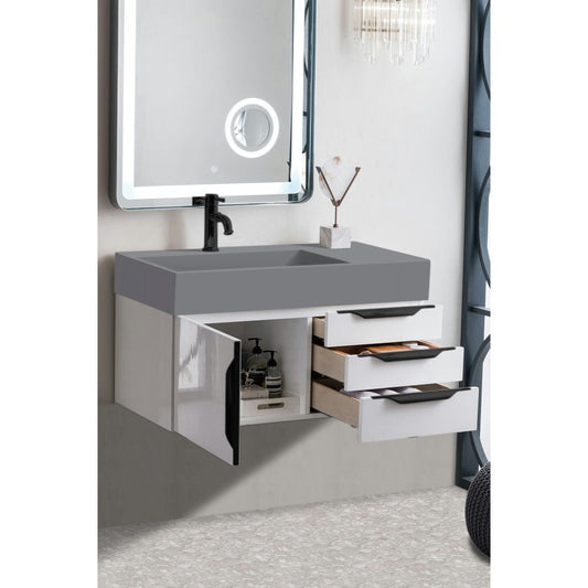 Mercer Island 36" Single Vanity, Glossy White w/ Dusk Gray Glossy Composite Top