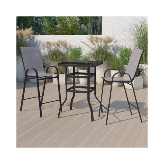 Flash Furniture Brazos Gray Glass Bar Patio Table Set TLH-073H092H-GR-GG